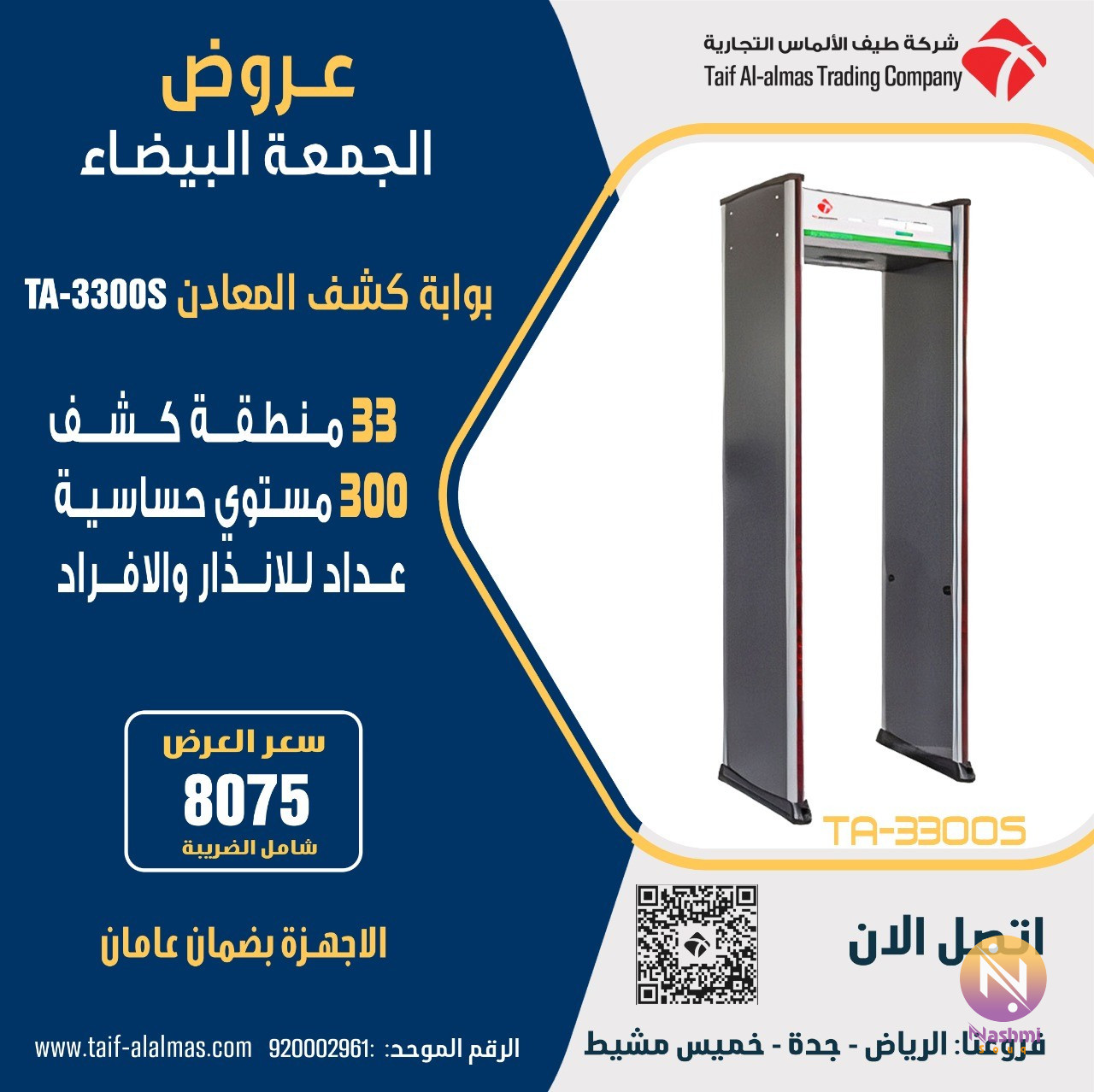 عروض الجمعة البيضاء بوابات كشف المعادن لتسهيل أداء فرد الأمن بوابات كشف المعادن سرعة الكشف لسهولة عبور المارة خاصة في الأماكن المزدحمة. - إمكانية ضبط حساسية مناطق الكشف بشكل منطقي دون خطأ. - توفر إمكانية التنبية الصوتي والضوئي معاً لتسهيل أداء فرد الأمن. - درجة تحمل العوامل الجوية والحرارة العالية في الشمس المباشرة مواصفات بوابة كشف المعادن - ثمانية عشر منطقة للكشف المتبادل إنذار في وقت واحد فى مناطق متعددة. - حساسية قابلة للتعديل: كل منطقة لديها 256 مستوى الحساسية ، 0-255 قابل للتعديل - شاشة LCD 5.7 بوصة - التحكم عن بعد بالأشعة تحت الحمراء - إنذار الصوت والصمام: مؤشر LED جانبي ، بسهولة تبين أين المعدن. - عد تلقائيا للأفراد وأوقات التنبيه - مؤشر قوة التنبيه على لوحة التحكم - حماية كلمة المرور ، فقط الشخص المصرح له يمكن أن تعمل. - سهولة التجميع: مصممة بقطعتين فقط الكابلات و 8 مسامير ، ببساطة لمتابعة التعليمات. - غير ضارة لجسم الإنسان: غير ضارة مع القلب - استخدام مواد مضادة للحريق عالية الكثافة - برنامج التشخيص الذاتي عند التشغيل ، لا حاجة المعايرة الأولية أو الدورية - تصميم ذات وحدات ، سهلة للصيانة والاستبدال. - بطارية احتياطية لمدة 4-8 ساعات فروعنا ( الرياض - جدة - خميس مشيط) لمعرفة المزيد من التفاصيل والعروض يرجي التواصل علي الرقم (اتصال او واتساب) :