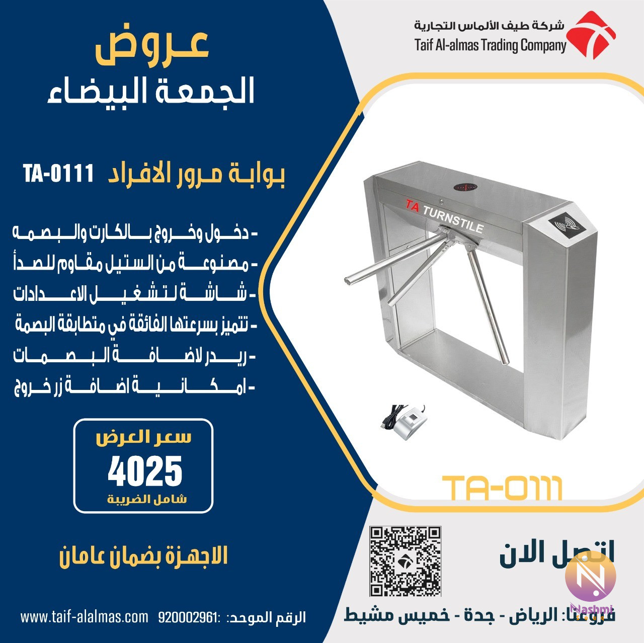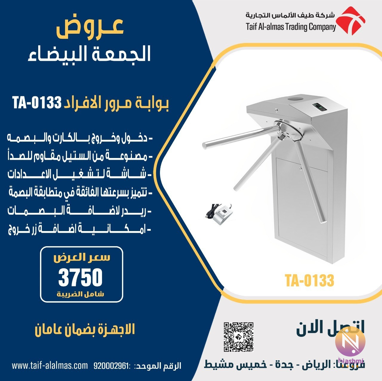 عروض الجمعة البيضاء بوابات مرور الافراد للشركات والمنشئات التجاريه بوابات دخول الافراد للتحكم في الدخول والخروج تصل للنوادي الرياضية والشريكات والمؤسسات الصغيرة والمتوسطة هي بوابات للتحكم في دخول الافراد للمنشأه , تقوم على تامين المنشأه من دخول الافراد الغرباء والذين لاتمسح بدخولهم لديك , تسمح بدخول الاشخاص بشكل منفرد فقط يمكن لشخص واحد بالمرور من خلالها فى كل مره يمكن ان تعمل بالبصمة او بالكارت RFID او من خلال التعرف على الوجه او من خلال الرقم السري تعمل مع جميع اجهزة access control ومع امكانية سحب تقارير للدخول والخروج تريد حماية منشأتك ، فهناك خيار متاح لك بوابات مرور الافراد فهي الحل الانسب من أجلك. العرض الاول بوابة مرور موديل TA-0155 العرض الثاني بوابة مرور موديل TA-0111 العرض الثالث بوابة مرور موديل TA-0133 مميزات بوابة مرور الافراد الترنستيل ذات كفاءة وتشغل أصغر مساحة ممكنة فهي مثالية للاماكن الضيقه. هذا النموذج من بوابات المترو او بوابات مرور الافراد هو الأكثر شعبية. حيث تسمح آلية عملها بمرور 20 شخصا في الدقيقة الواحدة في مسار واحد، و 60 رجلا عند عمل نظام المرور الحر. وسبب ذلك وقت الاستجابة السريع الذي يضمن عدم نشوء الطوابير والزحام، حيث تستبعد إمكانية تأخير عمل الاذرع الدوارة. تم تجهيز بوابة مرور الافراد او الباب الدوار الترنستيل مع آلية لمكافحة (الخوف) الذي يمنع الخوف في حالات الطوارئ. تسمح هذه الآلية بفتح الممر في ثوان معدودة. يتم التحكم بآلية الطوارئ عن بعد. **ضمان عامان على البوابات . **فروعنا فى جميع انحاء المملكة ( الرياض / جده / خميس مشيط ) **للتواصل او الاستفسار يرجى ( اتصال /واتس اب ) بوابات مرور الافراد – بوابات المترو – بوابات دخول وخروج الافراد – بوابة المترو – بوابة دخول بالبصمة بوابة مرور الافراد – بوابات ترن ستيل – بوابات دخول ميكانيكية – بوابه الكترونية – بوابات الكترونية – بوابات مترو اسعار بوابة دخول الافراد – شركة بوابات الكترونية – شركة بوابات مترو – بوابة بالبصمة – بوابة بالكارت بوابات مرور الافراد – بوابات المترو – بوابات دخول وخروج الافراد – بوابة المترو – بوابة دخول بالبصمة بوابة مرور الافراد – بوابات ترن ستيل – بوابات دخول ميكانيكية – بوابه الكترونية – بوابات الكترونية – بوابات مترو اسعار بوابة دخول الافراد – شركة بوابات الكترونية – شركة بوابات مترو – بوابة بالبصمة – بوابة بالكارت
