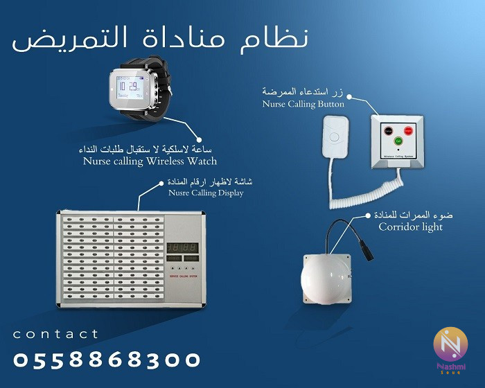 ولإن الدقيقة بتفرق في حياة الانسان اخترنا أفضل منتج النداء الآلي، وهو نظام استدعاء الممرضات المكون من (شاشة اظهار الرقم / زر استدعاء التمريض /ساعة لاسلكية لاستقبال طلبات النداء / ضوء ممرات المناداة) الذي يقوم بالإبلاغ عن طلب مريض المساعدة وذلك عن طريق شد المفتاح الخاص بالاستدعاء من خلال تنبيه صوتي وضوئي عند مكان تواجد طاقم التمريض أو من خلال الساعة اليد اللاسلكية، واللمبة المتواجدة فوق الغرفة التي تعمل تنبيه ضوئي لمعرفة الغرفة وذلك يضمن سرعة الاستجابة لطلب المريض، وتقديم خدمة سريعة ومتميزة للمرضى تضمن الحفاظ على صحتهم. Hospital Nurse Call Light Ball System For display watch pager transmitter bell button communication equipment for patient set خدمة التركيب والشحن في مختلف انحاء المملكة فروعنا في المملكة العربية السعودية (الرياض/جده/الخبر/القصيم/خميس مشيط) بالإضافة الى فروعنا في البحرين للتواصل جوال او واتساب 0558868300 اين,يباع,جهاز,استدعاء,التمريض اجهزة,نداء,الممرضات كيف,يعمل,البيجر البيجر,في,المستشفيات سعر,جهاز,البيجر كيف,استخدم,البيجر خدمة,البيجر,في,السعودية كم,كان,سعر,البيجر