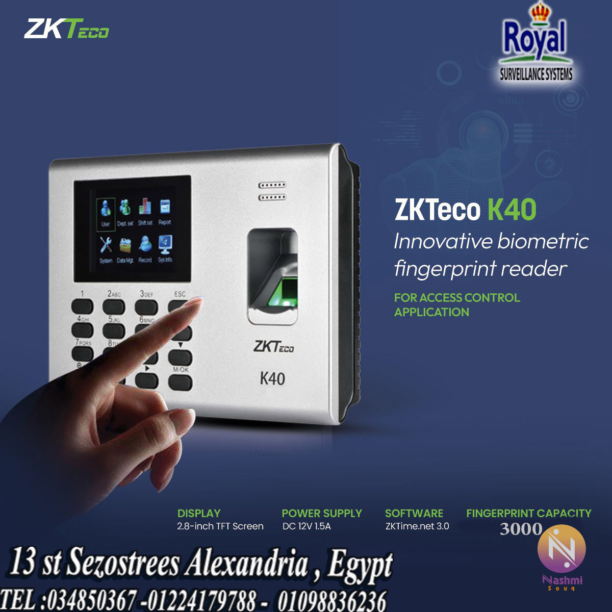 اجهزة حضور و انصراف ببصمة اصبع و كروت ID في اسكندرية K40 PRO BY ZKTECO K40 PRO • 3000 بصمة اصبع • 3000 بالكارت • 200,000 حركة توقيع • بطارية داخلية تعمل من 4 : 5 ساعات في حالة انقطاع التيار • سحب البيانات عن طريق USB أو TCP/IP : ضمان عام. للأستعلام أتصل على 034850367 – 01224179788 – 01098836236 Whatsapp link: https://iwtsp.com/201224179788 * الشركة مسجلة ضريبيا و يوجد لدينا سجل تجاري * العنوان 13 st Sezostrees Alexandria Egypt