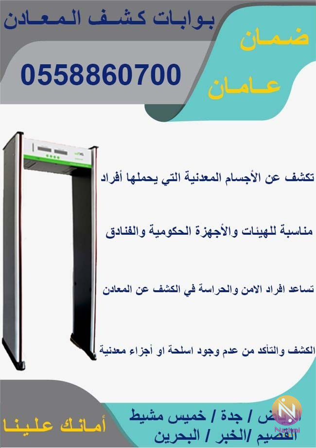 لبوابات الأمنية لكشف المعادن بوابات كشف المعادن لزيادة الامان وتفتيش الاشخاص التي تناسب الهيئات والاجهزة الحكومية والفنادق والاماكن الحساسة التي تحتاج الي درجة عالية من الامان والحماية. - ذات حساسية عالية للمعادن. - انذار صوتى عند وجود معادن. يوجد لدينا قسم خاص للتركيب والصيانة ضمان لمدة عامين فروعنا : "الرياض، جدة، الخبر، خميس مشيط القصيم ". ولنا فروع آخرى في البحرين. التواصل ت/ واتس 0558860700
