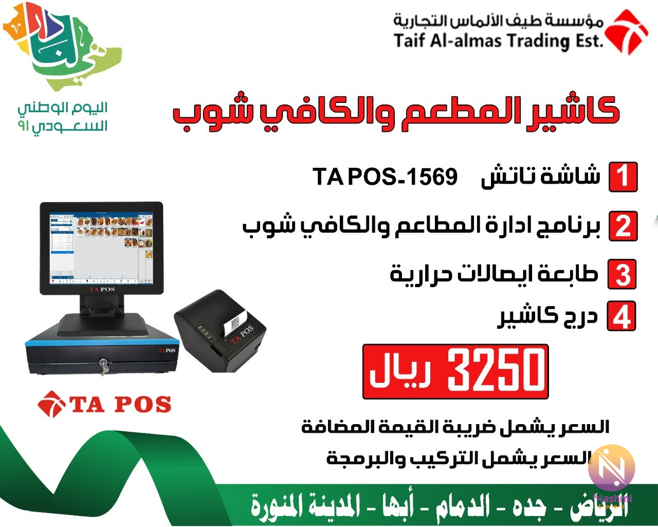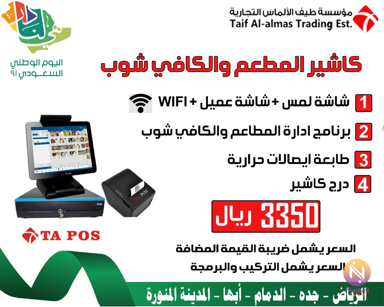 مؤسسة طيف الالماس التجارية للانظمة الامنية تقدم كتالوج المنتجات ( كاميرات مراقبة - سنترالات - كاشير- اكسس كنترول - حضور وانصراف - تتبع - مصد - بوابات - نقاط بيع - انتركم - انذار سرقات ) عبر الواتساب عن طريق الجول : 0559482145 تشرف مؤسسه طيف الالماس التجاريه بان تقدم لكم عرض عرض خاص و لفتره محدوده من اليوم الوطني لو بدور علي كاشير لكوفي شوب او سوبر مركت او بقاله او اي نشاط تجاري يبقا الطلب عندنا نقدم اقوي العروض و الخدمات من مؤسسه طيف الالماس العرض لفتره محدوده نقدم الى كل عملائنا بالمملكة العربية السعودية افضل العروض والتخفيضات على انظمة الكاشير التاتش والكمبيوتر مع البرنامج الخاص بالمبيعات والمشتريات والمخزون (كاشير سوبر ماركت,كاشير مطاعم,كاشير كوفى شوب,كاشير حلاقة,كاشير قرطاسية,كاشير محامص,كاشير اكسسوارات,كاشير هدايا,كاشير قطع غيار,كاشير جوالات,كاشير ملابس,كاشير عطارة,كاشير احذية) ●نقطة بيع مطاعم تاتش تدعم الضريبة المضافة