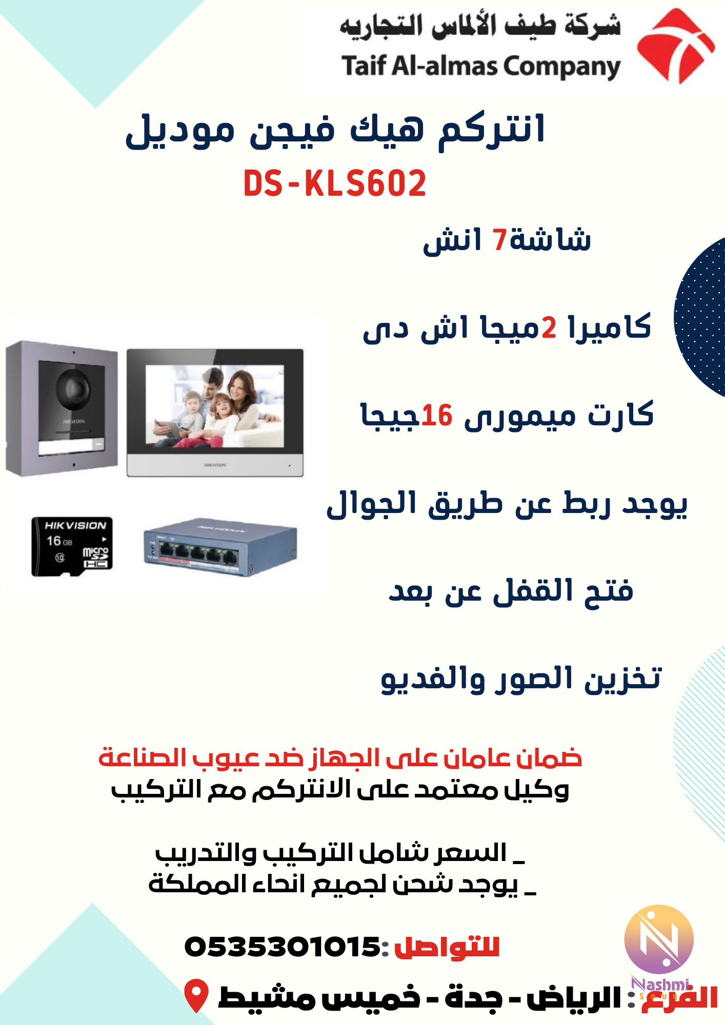 أنتركم حديث من Hikvision " Intercom kit DS-KIS602 IP" الذى يمكنك من خلاله الرد على المكالمات او فتح باب منزلك من اى مكان واينما كنت من خلال تطبيق على الهواتف الذكية او جهاز الكمبيوتر ومن مميزاته : 1-امكانية فتح الباب عن بعد من خلال الهواتف الذكية او جهاز الكمبيوتر 2-امكانية معرفة هوية الزائر من خلال الكاميرا الخارجية 3-امكانية اضافة اكثر من كاميرا على نفس الجهاز 4-إمكانية اضافة اكثر من شاشة اضافية سواء للغرف او للادوار الاخرى 5-رؤية ليلية فائقة الوضوح 6- امكانية تسجيل المحادثات مع الزائرين 7-شكل عصرى وانيق يناسب جميع الاذواق 8-امكانية ارسال اشعارات علي التطبيق كلما رن زائر ما الجرس 9-يسمح بمراقبة الكاميرا في الوقت الحقيقي من خلال التطبيق 10- امكانية ربط كاميرات Hikvision Ip مع الجهاز يتكون من :- شاشة تاتش ip 7 أنش مزودة ببطاقة microSD بسعة 16 جيجابايت كاميرا خارجية 2 ميجا مع الاسبيكر والجرس كما يمكن اضافة :- اكثر من شاشة لادوار مختلفة اكثر من كاميرا , ايضا يمكن ربطه مع كاميرات فروعنا : " الرياض, جدة , ابها " للتواصل : واتس اب او جوال : #انتركم_منزلي #انتركم_هيك_فيجن #انتركم_يفتح_الباب #انتركم_هيك_فيجن_ip #جهاز_انتركم #اجهزة_انتركم #نظام_انتركم #انتركم_لفتح_الباب #انتركم_عروض #عروض_انتركم #انتركم_شاشة