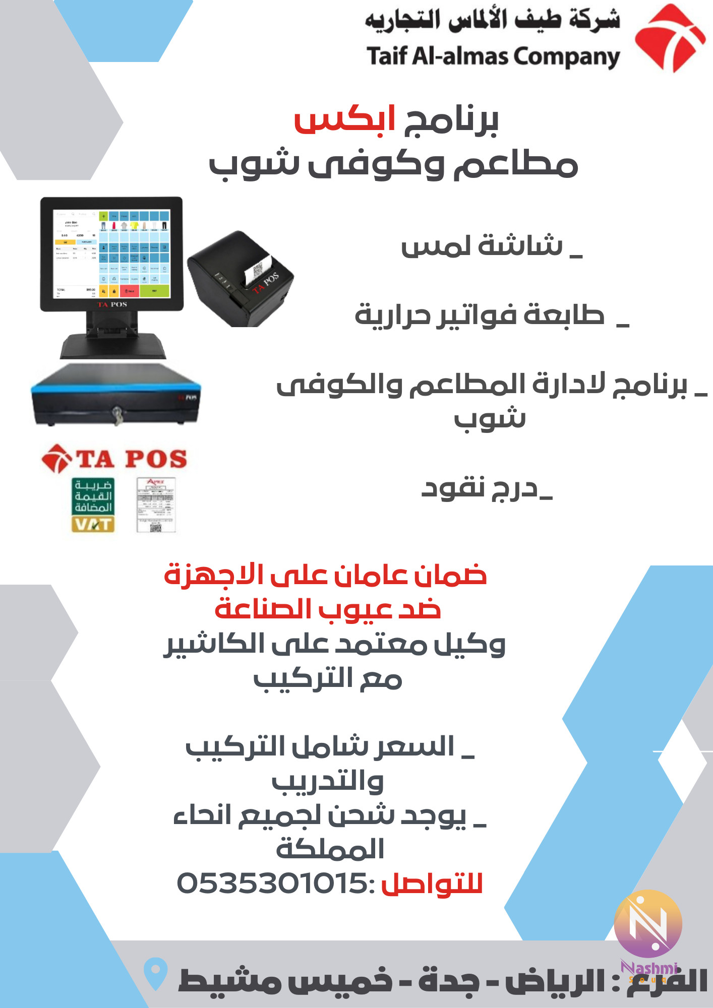 لجميع اصحاب المطاعم والكوفي شوب نقدم لكم عرض لفترة محدودة علي اجهزة الكاشير وبرامج المحاسبيه ومستلزمات المطاعم والكافيهات - مكونات الكاشير - نقطه البيع للمطاعم والكوفي شوب TA-POS : ●شاشة تتش 15 انش + واي فاي WIFI (المعالج: Intel L1900 - الذاكرة: DDRIII 4G - التخزين: 128G SSD - مزود بـ: USB: 6 USB Ports مزود بـ: Lan:1 - مزود بـ: 1 HDMl + 1VGA - مزود بـ: شاشة عرض العميل - مزود بـ: واي فاي WIFI) ● درج كاشير 5 خانات TA-POS ●طابعه ايصالات USB / Ethernet ● برنامج ابكس لادارة المطاعم والكوفي شوب ●"البرنامج مرخص مدى الحياة بدون اى اشتراكات شهرية او سنويه" ●"ودعم فنى لمدة سنه مجانا" ●"ضمان عامان " ●"التركيب مجانا كخدمه مقدمه من الشركة لعملاؤنا الجدد" ------------------------------------------------------------------------------------------------------------------------------- مميزات برنامج ابكس للمطاعم: **************** - امكانية توصيل عدد من الطابعات وطباعة كل طابعة باصنافها ( كل مجموعه اصناف يتم تحديد طابعة لها ) - تنظيم المخزون وادخال فواتير المشتريات وحسابات الموردين ودفعات السداد. - معرفة مبيعات فترة وارباحها سواء مبيعات كامل الفرع او مبيعات الاصناف او مبيعات مجموعة اصناف محددة. - يدعم ضريبة القيمة المضافة وامكانية طباعة تقارير الضريبة سواء للمشتريات او المبيعات او كلاهما ------------------------------------------------------------------------------------------------------------------------------ ●فروعنا : " الرياض , جدة , ابها " اجهزة_كاشير_للمطاعم, ماكينة_كاشير_للمطاعم, اجهزة_كاشير_للمطاعم_للبيع, كاشير_جهاز_مطاعم, اجهزة_مطاعم_كاشير, جهاز_كاشير_كامل, جهاز_كاشير_مطعم, جهاز_كاشير, ماكينة_كاشير_للمطاعم_والمحلات, جهاز_كاشير_حراج, جهاز_كاشير_متكامل, جهاز_كاشير, #نظام_نقاط_البيع_للمطاعم #اجهزة_نقاط_البيع_للمطاعم #برنامج_نقاط_البيع_للمطاعم #برنامج_نقاط_البيع_للمطاعم #مراكز_بيع_معدات_مطاعم #نقاط_بيع_برنامج_مطاعم #نقاط_بيع_كاشير_مطاعم #برنامج_نقاط_بيع_للمطاعم #نقاط_البيع_للمطاعم #نقاط_بيع_مطاعم #نقاط_بيع_للمطاعم #برنامج_بقاله #سوبر_ماركت #مطاعم #كوفى_شوب #كاشير #شاشة_تاتش #بيع #حراج_كاشير #حراج نقاط بيع #مستلزمات_مطاعم #مستلزمات_كوفي_شوب #درج_كاشير #شاشه_تاتش #طابعه_فواتير #ورق_حراري #جهاز_كمبيوتر #الانظمه_الامنية