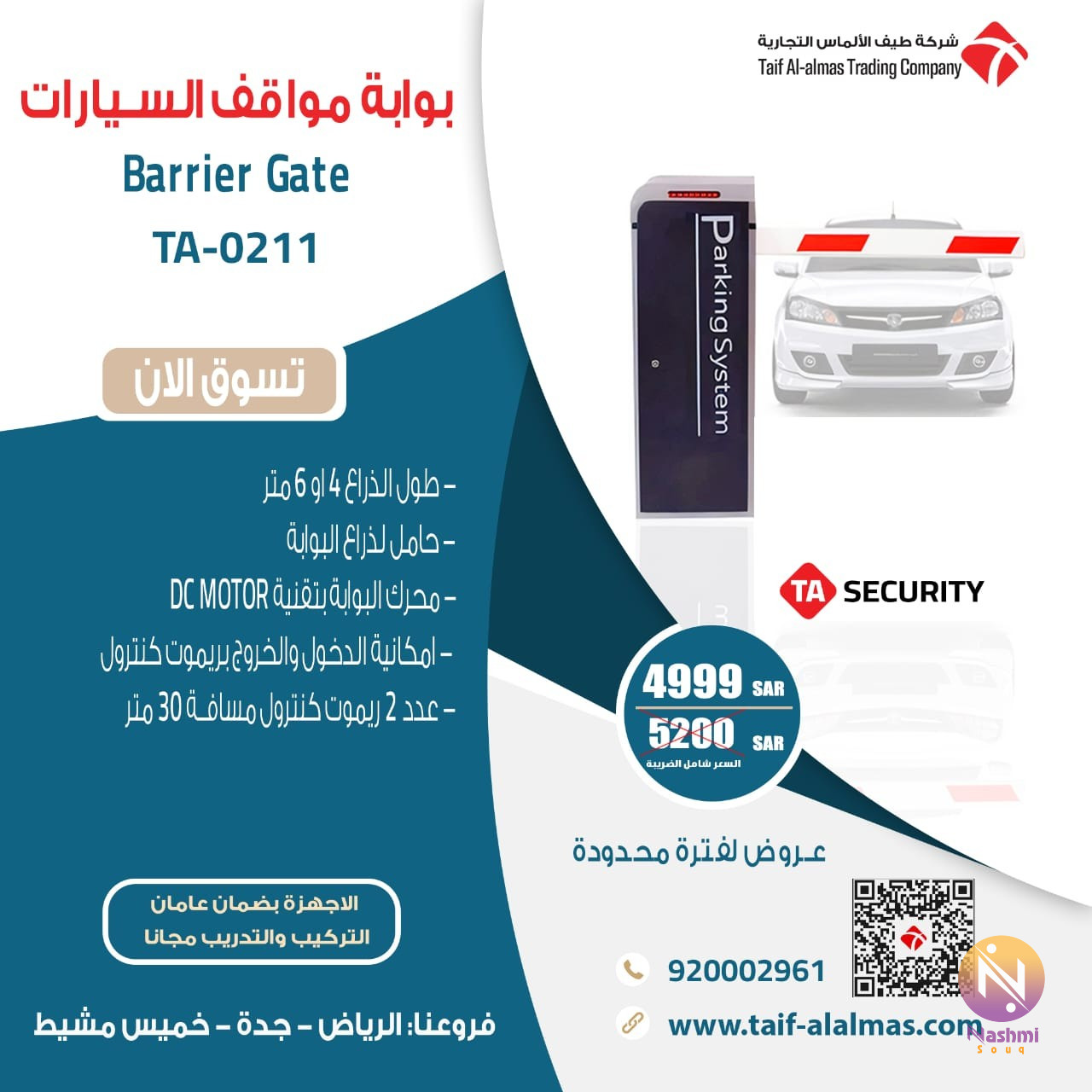 تقدم لكم مؤسسة طيف الالماس بوابة مواقف السيارات باعلي كفاءة واقل الاسعار لاننا الوكيل المعتمد داخل المملكة العربية السعودية نقدم لكم بوابة التحكم في دخول وخروج السيارات التى تضم عدة انظمة والعديد من المزايا التي تضمن الإنضباط والتنظيم والدقة في عبور السيارات لتفادي الكثير من المشكلات عرض البوابة :- **** 1-محرك البوابة بتقنية Dc Motor . 2-عدد2ريموت كنتروال مسافة30متر . 3-الدخول والخروج بريموت كنتروال 4- حامل لذراع البوابة . 5- ذراع4&6 متر . **كما يمكن : * امكانية اضافة زر لفتح وغلق البوابة من غرفة الحارس . * امكانية اضافة لوب لفتح البوابة من الداخل اثناء خروج السيارات اتوماتيك . * امكانية فتح البوابة عن طريق الكارت يتم تركيب اكسس كنتروال Access Control . *امكانية تحديد تركيب البوابة يمين او يسار حسب متطلبات الموقع . **يتم ذلك حسب متلطبات العميل وبتكلفة اضافية . **كما متوفر لدينا ايضا بوابات دخول وخروج الافراد بالبصمه والكارت والرقم السرى وبوابات كشف المعادن وايضا بجهاز تفتيش الحقائب **لمزيد من العروض يرجى زيارزة صفحتنا . **نحن متخصصون فى انظمة البوابات الالكترونية بوابات سيارات /بوابات افراد /كشف المعادن / تفتيش الحقائب **ضمان عامان على البوابات . **فروعنا فى جميع انحاء المملكة ( الرياض / جده / خميس مشيط ) **للتواصل او الاستفسار يرجى ( اتصال /واتس اب ) ( رقم الجوال يظهر في الخانة المخصصة ) بوابة دخول وخروج سيارات / بوابات دخول سيارات وخروج بالبصمة والكرت / بوابة مواقف بوابة دخول وخروج سيارات / بوابات دخول سيارات وخروج بالبصمة والكرت / بوابة مواقف بوابة دخول وخروج سيارات / بوابات دخول سيارات وخروج بالبصمة والكرت / بوابة مواقف