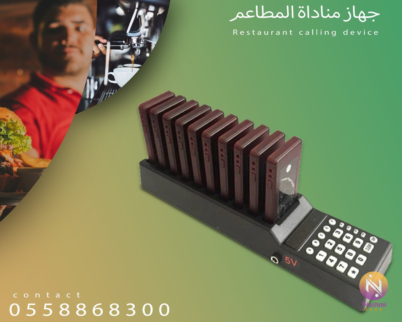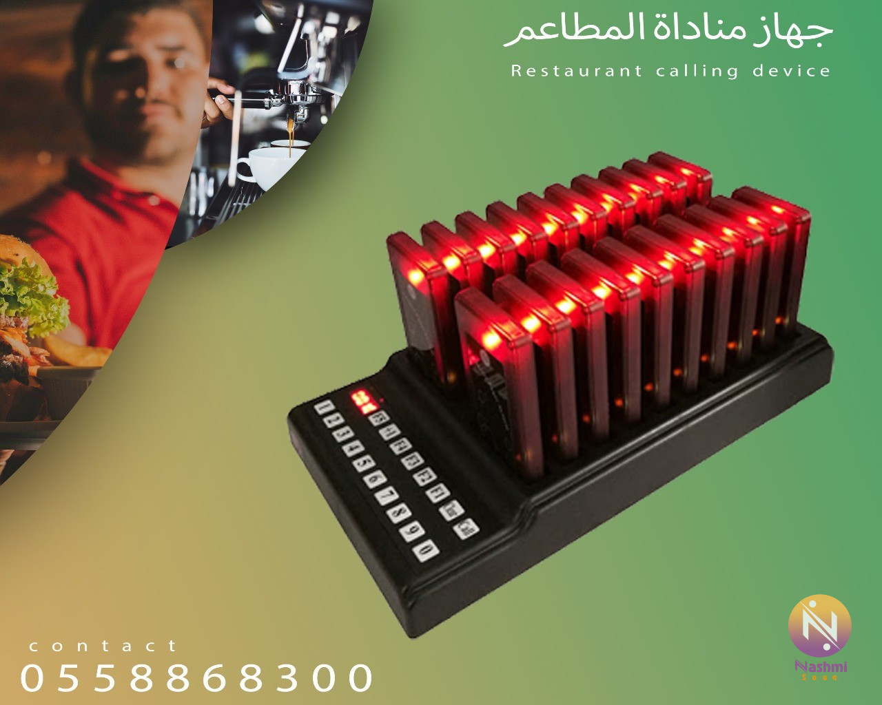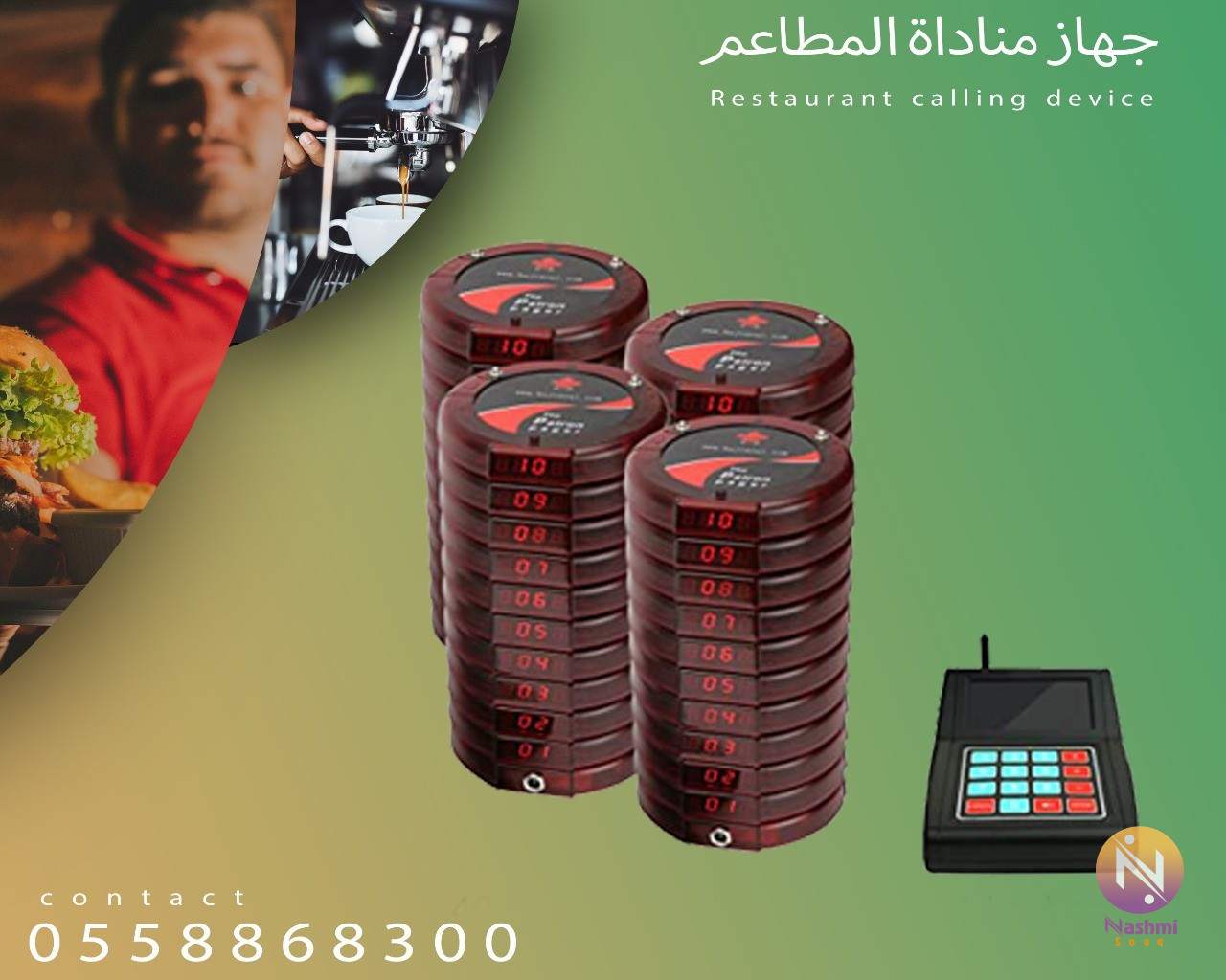 اجهزة النداء اللاسلكية calling systemلأصحاب المطاعم والكافيهات يعمل جهاز بيجر المطاعم على سهولة وسرعة استدعاء النادل وتنظيم حركته يحتوي على 3اوامر (ازرار): طلب حضور النادل/الغاء طلب حضور النادل/طلب فاتورة الوجبات يعمل الجهاز بنظام الصوت والضوء والاهتزاز مرفق مع الجهاز 10 أجهزة بيجر وقاعدة شحن واحدة تكفي للعدد ويمكن إضافة أجهزة نداء أخرى على نفس القاعدة، مدمج بداخله بطاريه قابلة لإعادة الشحن ويمكن إستخدامه 72 ساعة في وضع السكون و36 ساعة من الإستخدام يمكنك دمج واستخدام 999 جهاز بيجر على نفس لوحة المفاتيح سهلة الإستخدام ترددات ثابته لا تتأثر بإشارات الراديو الأخرى أو شبكة الجوال يصل الإرسال لمسافة 100 متر داخل البنايات ويخترق 10 عوازل، وفي المناطق المفتوحة يصل ل- 500 متر ضمان عامين ضد عيوب الصناعة فروعنا بالمملكة :(الرياض /جدة/الخبر/القصيم/خميس مشيط) للتواصل جوال او واتساب: 00966558868300 ولدينا فروع بدولة البحرين