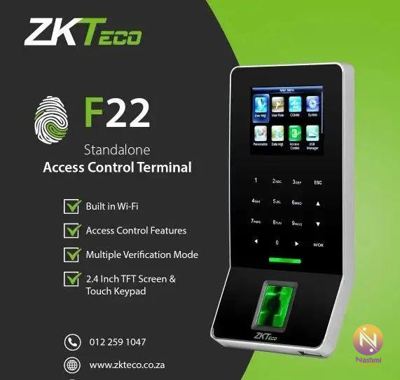 جهاز اكسس كنترول للتحكم في الابواب F22-Zkteco • تصميم رقيق للغاية وأنيق . • واجهة الشبكة تعمل عن طريق TCP / IP أو RS485 . • شاشة ملونة TFT بحجم 2.4 بوصة ومفاتيح تعمل باللمس . •دقيقة جدا في احتساب تسجيل وقت الدخول منذ استلام بصمة المستخدم . • جهاز التحكم في الدخول F22-ZK هو جهاز تسجيل وقت الحضور وقادر على التحكم في بصمة الإصبع مع مستشعر BioID و Wi-Fi ، والذي يقدم أداءً لا مثيل له مع خوارزمية متقدمة لضمان الموثوقية والدقة وسرعة مطابقة ممتازة. •يتميز F22 بأنه يحتوي علي أسرع خوارزمية لمطابقة بصمات الأصابع على أساس تجاري يعمل بالأشعة تحت الحمراء عالية الأداء. •توفر F22 تجربة لمس فائقة مع لوحة مفاتيح تعمل باللمس ، وتوفر المرونة للتثبيت المستقل أو مع أي لوحة تحكم للدخول من جهة خارجية تدعم إشارة قياسية من wiegand. كما يتوفر TCP / IP و RS485 و Wi-Fi بحيث يمكن استخدام الجهاز في شبكات مختلفه •سعة بصمات الأصابع : 3000 بصمة •القدرة على التعامل : 30000 قدرة •سعة البطاقة : 5000 (اختياري) معرف •جهاز اکسس کنترول يعمل ( بالبصمه - والكارت - والرقم السري ) • زر داخلى في حالة غلق الابواب من الخارج. •زمن مطابقة البصمة او الكارت 1 ثانية فقط. • الرد الآلى عند قبول البصمة أو رفضها. •تحكم دقيق عند دخول الأبواب - يدعم اللغتان ( العربية / الانجليزية ) . •غلق القفل تلقائي عند مرور 7 ثواني - يمكن تركيبها على جميع أنواع الأبواب. •مزودة بمفاتیح احتياطية في حالة الطوارئ.