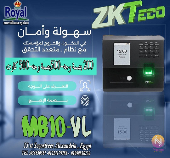 جهاز MB10-VL من ZKTeco هو جهاز حضور وانصراف مدمج يدعم التعرف على الوجه، بصمة الإصبع، والكروت الذكية (RFID)، وهو مثالي للشركات الصغيرة والمكاتب. الجهاز يعمل بتكنولوجيا الضوء المرئي (Visible Light)، مما يجعله سريع ودقيق حتى في ظروف الإضاءة المتنوعة. المواصفات المحدثة لجهاز MB10-VL: 1. طرق التحقق: بصمة الوجه: يدعم تسجيل حتى 200 بصمة وجه. بصمة الإصبع: يدعم تسجيل حتى 500 بصمة إصبع. مستخدم كارت :500 مستخدم 2. السعة: يمكنه تخزين حتى 50,000 حركة (Logs). 3. الشاشة: شاشة ملونة TFT بحجم 2.8 بوصة تعرض البيانات بوضوح وسهولة. 4. الاتصال: يدعم الاتصال بـ: TCP/IP لتوصيل الجهاز بالشبكات. USB لنقل البيانات يدويًا. 5. الوظائف: يعمل كـ جهاز حضور وانصراف لتسجيل حركات الموظفين. يدعم التحكم في الأبواب مع الأقفال الكهربائية. 6. الأداء: سرعة التعرف أقل من 1 ثانية باستخدام الوجه أو البصمة. دقيق في ظروف الإضاءة المتنوعة بفضل تقنية الضوء المرئي (Visible Light). أهم المميزات: تكنولوجيا متطورة للتعرف على الوجه حتى في ظروف إضاءة مختلفة. تصميم صغير الحجم ومناسب للمكاتب الصغيرة. يدعم التحكم في الأبواب لزيادة الأمان. تخزين بيانات كافٍ للشركات الصغيرة. الاستخدامات: الشركات الصغيرة والمتوسطة. المكاتب والمحلات التجارية. الأماكن التي تحتاج نظام حضور وانصراف بسيط وفعال. لماذا تختار MB10-VL؟ جهاز مدمج يناسب الأماكن الصغيرة. يدعم تقنيات حديثة وموثوقة للتعرف على الوجه والبصمة. اقتصادي وسهل الاستخدام. 034850367 – 01224179788 – 01098836236 Whatsapp link: https://iwtsp.com/201224179788 * الشركة مسجلة ضريبيا و يوجد لدينا سجل تجاري * العنوان 13 st Sezostrees Alexandria Egypt