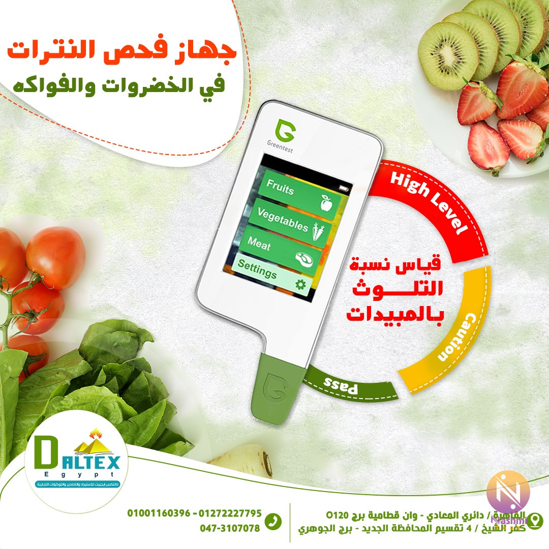 جهاز فحص النترات في الخضراوات والفواكة🍉🥦 ✅شركة دالتكس ايجيبت بتوفرلك جهاز التحليل السريع للنترات في الخضار والفواكه الطازجة ، وكذلك تحديد مستوى النشاط الإشعاعي والمواد الصلبة الذائبه و مواد اخرى مضرة. 📞يمكنكم الاتصال بنا على: 002-01001160396 002-01272227795 002-047-3107078 🌐 او زيارة موقعنا : https://daltexeg.com/ 🏢 العنوان: جمهورية مصر العربية - القاهرة – دائرى المعادى وان قطامية برجO204 الدور الاول مكتب 110 - كفرالشيخ - تقسيم المحافظة الجديد ( خلف سيراميكا رويال ) برج الجوهري