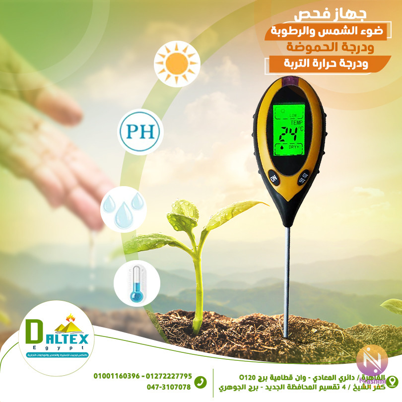 🔸 جهاز فحص ضوء الشمس، الرطوبة، درجة الحموضة، ودرجة حرارة التربة 🔸 أداة ذكية وسهلة الاستخدام، تديك قراءة دقيقة لحالة التربة في ثواني! 🌞 أشعة الشمس: 9 مستويات (LOW- ➜ HGH+) 💧 الرطوبة: 5 مستويات (DRY+ ➜ WET+) ⚡ درجة الحموضة (pH): من 3.5 إلى 9.0 – بدقة 0.5 🌡️ درجة الحرارة: من -9 إلى +50℃ – بدقة 1℃ 🔋 بيشتغل ببطارية 9 فولت ⏱️ إيقاف تلقائي بعد 5 دقائق 📏 الحجم: 122×63×36 مم ⚖️ الوزن: 230 جم فقط 📌 مناسب للزراعة، الحدائق، المشاتل، والباحثين الزراعيين 📞 للاستفسار وطلب الجهاز: 📱 01001160396 – 01272227795 ☎️ 0473107078 📍 أماكن التواجد: 🏢 القاهرة – دائري المعادي، برج O120، الدور السادس 🏢 كفر الشيخ – خلف سيراميكا رويال، برج الجوهري