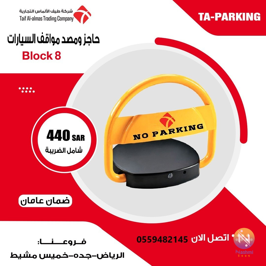 موديل الجهاز plok 8 هذا الجهاز يركب امام الموقف حقك ويمنع اي شخص من الوقوف امامه. له ريموت لفتح وقفل الجهاز بمسافة 10 متر مواصفاته: -ضد السرقه(مساميره داخليه ولا تقدر تفتحها الا بعد ما تفتح غطاء الجهاز بالمفتاح الخاص له - يتحمل 3 طن -ضد المويه والغبار -له انذار في حاله التلاعب فيه - قابل للنقل لاي مكان اخر.(فقط فك المسامير وركبه في الموقع الجديد) - يعمل بالبطاريه مقاس دي لمده فوق 8 اشهر وتغيرها ما ياخذ دقيقه -يتحمل الحراره الى 65 درجه مئويه -شكله انيق -مصنوع من الحديد القوي وزنه 9 كج تقريبا - في حال الاصتدام به والعامود مرفوع لا يتاثر بشي وينزل العامود ولكن يشتغل الانذار حتى تخرج السياره من الموقف *-*ضمان عامان ضد عيوب الصناعه السعر 440 ريال شامل الضريبه للتواصل جوال و واتس اب0559482145 فروعنا الرياض- الخميس مشيط - جده