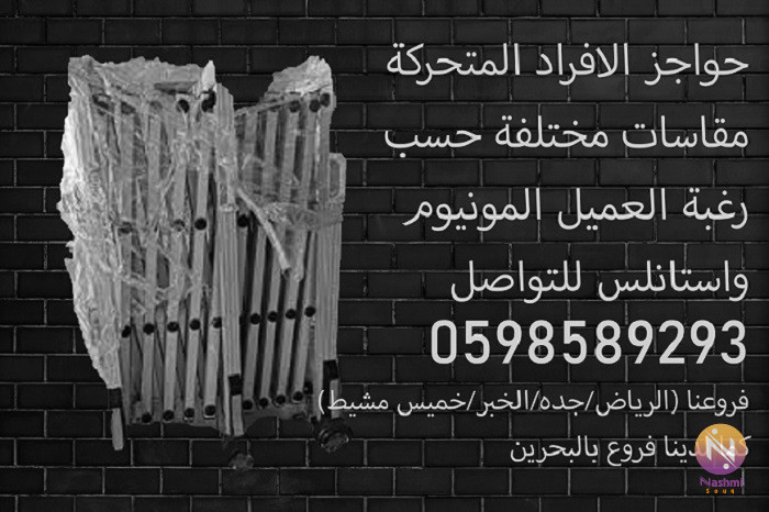 عرض خاص وبسعر مناسب على حواجز الافراد المتحركة استانلس والمونيوم حسب اختيارك حواجز متحركة على عجلات سهلة الفتح والغلق بمقاسات مختلفة تصل الى 2.5متر تصلح للسوبر ماركت والمحلات واماكن مختلفة كثيرة بأفضل الأسعار لدي فروعنا (الرياض- جدة – القصيم – الخبر – خميس مشيط) ولنا فروع أيضا في البحرين للتواصل جوال او واتس اب 0598589293