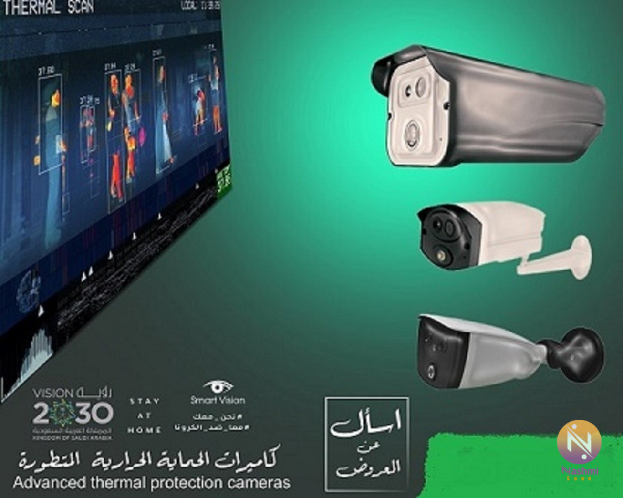 كاميرات الحماية الحرارية:تعددت طرق مواجهة الفيروسات ومن اهمهما كاميرات حرارية ليلية ونهارية ، تصلح للمولات والمصالح الحكومية والمؤسسات تكشف الأشخاص الذين لديهم درجة حرارة عالية من بين الجموع وتتبعهم هناك إنذار وقت اكتشافها درجة حرارة عالية يمكنها قياس درجة حرارة من 20 إلى 30 شخص في نفس الوقت.من على مسافةتصل الى 2.5 متر يوجد شحن لجميع انحاء المملكة السعوديّة، فروعنا في: الرياض، جدة، الخبر، خميس مشيط. ولنا فروع آخرى في البحرين التواصل عن طريق الجوال أو الواتساب، على رقم:0598589293