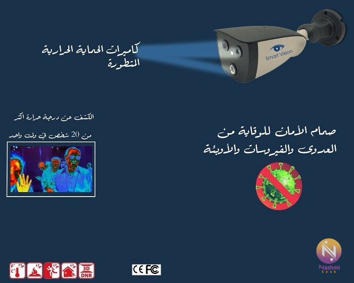 كاميرات الحماية الحراريةHikvision كاميرات مراقبة درجة حرارة الافراد اثناء الدخول والخروج مع الاحتفاظ بسجل كامل للأفراد عن حالة درجة الحرارة والتي تعد الاختيار المناسب لهذا النوع من الحماية ضد فيرس كورنا الذي يقوم بالكشف عن بعد عن درجة حرارة 20-30 شخص في نفس الوقت , مما يعني اتخاذ التدابير اللازمة للوقاية من العدوى الكاميرات الحرارية المتطورة لها قدرة على تصوير وقياس للحرارة حتى مسافة 2.5م فهي صمام الأمان من العدوى والفيروسات والأوبئة لكل المنشآت العامة الفنادق , المستشفيات , مراكز خدمة المواطنين ,و المولات حافظ على امانك فروعنا في المملكة العربية السعودية (الرياض-جده-الخبر-القصيم-خميس مشيط) بالإضافة الى فروعنا في البحرين للتواصل جوال او واتساب / 00966558868300