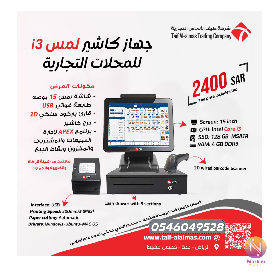 جهاز كاشير للمحلات التجاريه مع برنامج مجاني جهاز كاشير جديد + برنامج مجاني للبيع جهاز كاشير لمس بجودة عالية حل متكامل لإدارة المطعم بسرعة وسهولة واحترافية. كافيه أو مطعم او محل تموين -سوبر ماركة- احذيه- مكتبه- بقاله وتتكون من: البرنامج مبيعات ومشتريات ومخازن شاشه كور i3 طبعت فواتير قارئ باركود درج خمس نقود تدريب والتركيب مجانا البرنامج معتمد من هيأت الذكاه ويدعم الضريبه المضافه والفتوره الالكترونيه والشحن في اي مكان في السعوديه فروعنا: الرياض+ جده +خميس مشيط+ المدينه المنوره #كاشير #مطاعم #مطعم #كافيه #كافيهات #برنامج #إلكتروني #محاسبي #مكتبي #بوابات مرور السيارات #أجهزة القفل اإللكتروني #بوابات مرور االفراد #بوابات انذار ضد السرقات #حاجز ومصد المواقف #اجهزة القفل اإللكتروني #أجهزة بصمه الحضور واالنصراف #أجهزة كشف المعادن #أجهزة إلانذار ضد السرقات #أجهزة تفتيش الحقائب #كاميرات المراقبة #أجهزة تتبع المركبات #أجهزة االنتركم