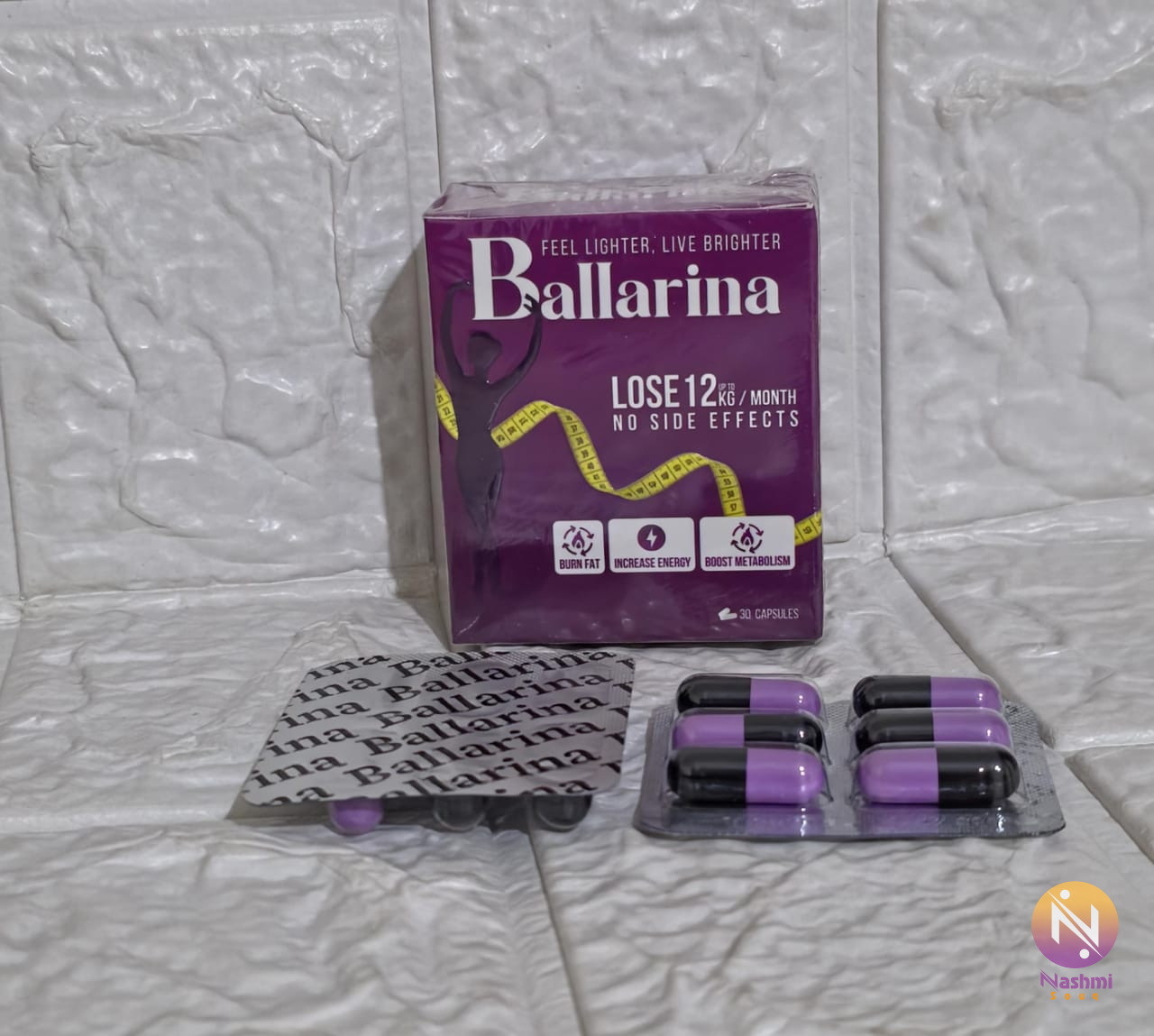 -كبسولات بلارينا للتخسيس وحرق الدهون ballerina capsules . -تتكون من مجموعة من الأعشاب والنباتات الطبية الطبيعية مدعومة ببعض الفيتامينات الهامة. -والتي تعمل على زيادة معدلات حرق الدهون المتراكمة في الجسم. -مع تقليل الشهية للطعام مع إمداد الجسم بالطاقة والحيوية. -تعمل حبوب ballerina للتخسيس بدون ريجيم او نظام غذائي قاسى او ممارسة للرياضة. - كما أن المنتج آمن وفعال والنتائج رائعة. - تعرف أكثر على فوائد وسعر حبوب ballerina للتخسيس في السطور التالية. - كبسولات ballerina للتخسيس بدون حرمان من الطعام أو اتباع رجيم قاسي. - تزيد من سرعه تكسير الدهون بمعدل الضعف. - تعمل على تقليل الشهية والرغبة في تناول الطعام. - تعمل على تنشيط الجسم لممارسه الأنشطة اليومية بكل حيوية. - تعمل على تنظيم مستويات السكر في الدم. - تقوم بزيادة معدل حرق الدهون المخزنة في الجسم. - تفتيت الدهون المتراكمة والعنيدة بمختلف مناطق الجسم. - موانع الاستخدام : مرضي القلب والسكر والضغط المرتفع. - العبوة تحتوي علي 30 كبسوله تكفي لمدة شهر. -للتواصل واتس او فون : 01021711889
