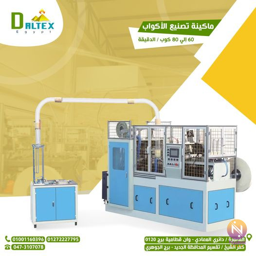 ماكينة تصنيع الأكواب الورقية الأسرع في فئتها! ⏱️ من 60 إلى 80 كوب في الدقيقة يعني في 10 دقايق بس = 700 كوب جاهز للبيع 😍 📦 منتج مطلوب في كل مكان: ☕ الكافيهات 🍔 المطاعم 🛒 السوبر ماركت 💰 يعني مشروعك مضمون الأرباح من أول يوم! ⚙️ الماكينة سهلة التشغيل – سعرها مناسب – وكمان متوفرة أنظمة سداد وتقسيط تساعدك تبدأ فورًا 💪 📞 للتفاصيل تواصل معنا: 002-01001160396 002-01272227795 002-047-3107078 📲 تابعنا على فيسبوك: facebook.com/elgoharry 📍 فروعنا في مصر: 🏢 القاهرة: دائري المعادي – وان قطامية – برج O207 – الدور الأول 🏢 كفر الشيخ: دوران 47 – خلف سيراميكا رويال – برج الجوهري