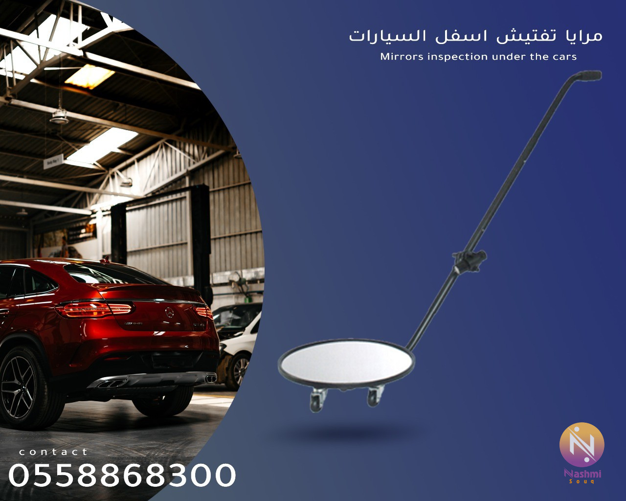 يمكنك الان بسرعة وبدقة عالية تحديد الممنوعات المخفية في السيارات من خلال المرآه الامنية للكشف عن الهيكل السفلي للسيارة: وهي عباره عن مرايا عاكسه محمولة باليد فهي خفيفة الوزن ومزوده بعجل لسهولة الحركة وتحمل الخدمات الشاقة. بها إضاءة وتعمل بالبطارية للاستعمال لليلي فهي مثبته على قاعده متينه، منها مرآه مقعره ومحدبه. أداة حيوية لكثير من المهن فهي تستخدم من قبل افراد الامن(السيكيورتي) لإجراء عمليات البصرية من خارج السيارة والهيكل السفلي لها لكي تكشف عن وجود مفرقعات او ممنوعات وغير ذلك..., فروعنا في المملكة العربية السعودية: [الرياض ،جدة ،الخبر ،القصيم ،خميس مشيط] (لدينا ايضا فرعنا في البحرين) للتواصل جوال أو الواتساب/ 00966558868300