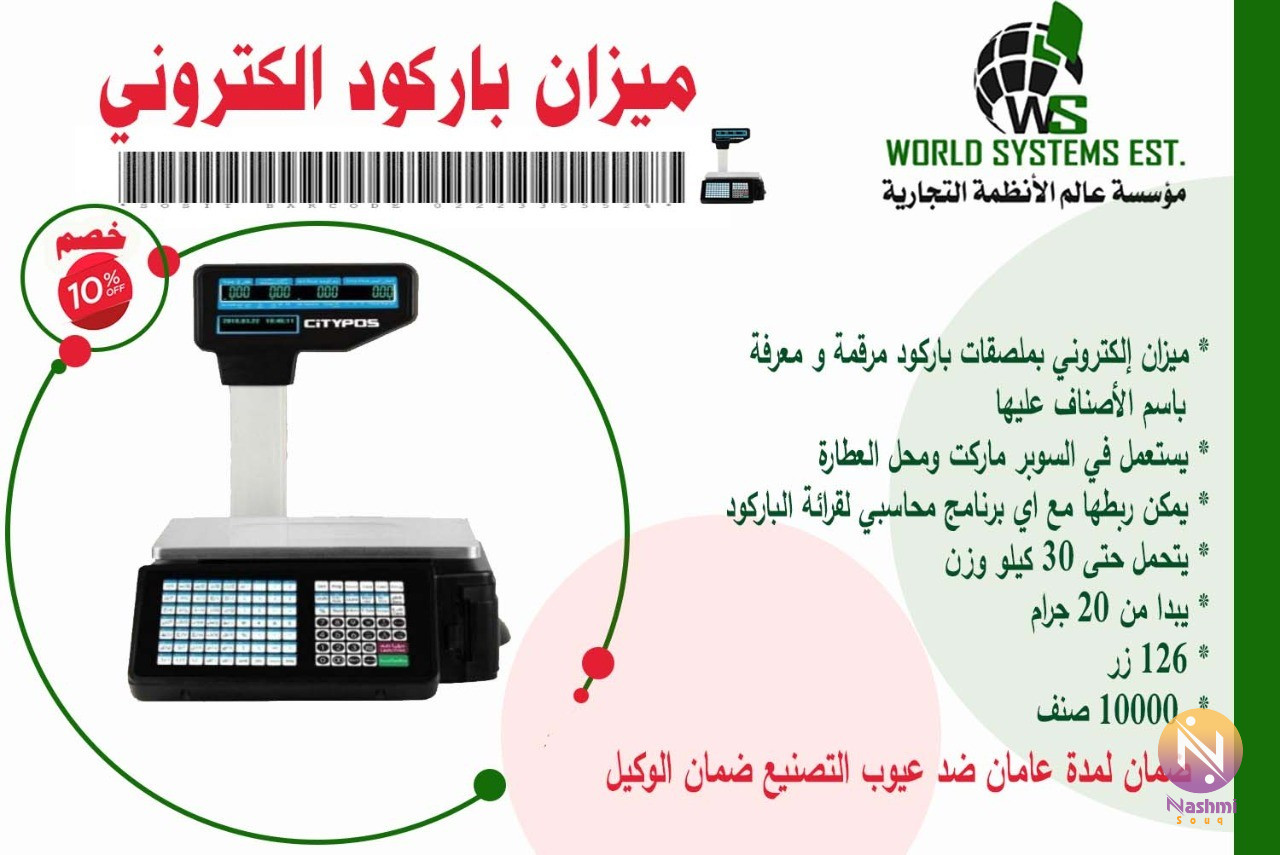 ميزان باركود إلكتروني الميزات الأساسية مميز بتصميم قوي لضمان خصائص المرونة وتعددية الاستعمال هيكل فائق المتانة يوفر حماية إضافية ضد المخاطر الأساسية مصممة بدقة لتوفير عمر طويل مما يضمن الاستخدام المكثف الوصف : ميزان إلكتروني بملصقات باركود مرقمة و معرفة باسم الأصناف عليها يستعمل في السوبر ماركت ومحل العطارة يمكن ربطها مع اي برنامج محاسبي لقرائة الباركود يتحمل حتى 30 كيلو وزن يبدا من 20 جرام 126 زر 10000 صنف #ارخص ميزان باركود #ميزان باركود للبيع #ميزان باركود ميزان الكتروني للمحلات #pos #استعمال الميزان الالكتروني #ميزان باركود الكتروني #ميزان باركود #ميزان الكتروني