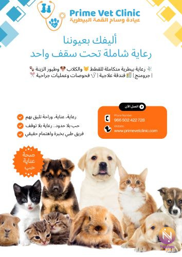 Prime Vet Clinic | عيادة وسام القمة البيطرية 📣📣📣📣 الموقع: الرياض – حي الملك سلمان (الواحة) للحجز والاستفسار: 0502422728 خدماتنا البيطرية المتكاملة لحيواناتكم الأليفة: كشف وفحوصات شاملة تطعيمات وقائية أساسية تحاليل مخبرية دقيقة طوارئ وعلاج سريع تنظيف وتجميل (قص شعر – تنظيف أسنان – عناية بالأذن) فندقة ورعاية فاخرة أثناء السفر أو الانشغال راحتهم وسلامتهم أولوية عندنا… لأنهم جزء من عائلتكم. احجز الآن وخلي حيوانك الأليف ينعم برعاية مميزة للحجز والاستفسار: 0502422728