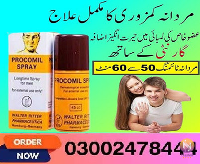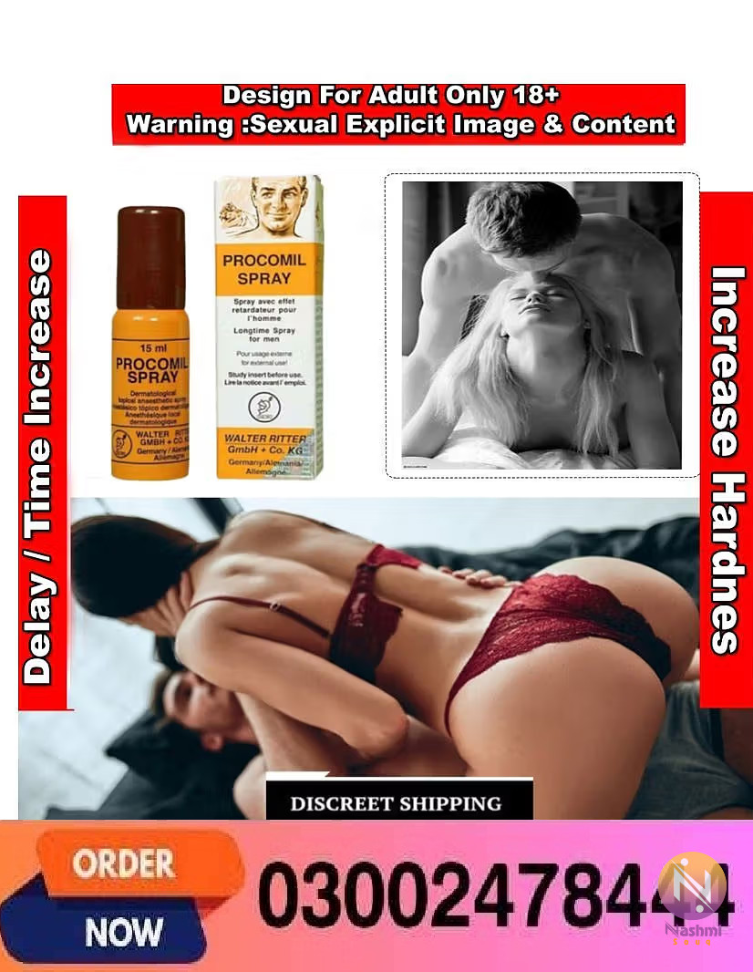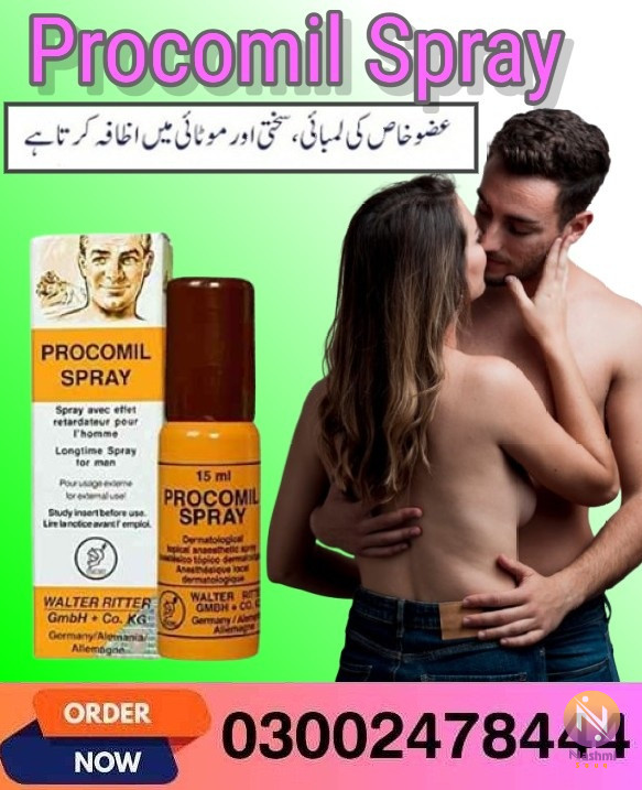 Procomil Longtime Delay Spray For Men 40ml PROCOMIL SPRAY IN PAKISTAN Is A Product For Men Used For Preventing Premature Ejaculation. It Is Sprayed On The Penis To Lessen Sensations During Intercourse And Allow One To Last Longer And At The Same Time Enjoy More Satisfaction. Features: • Sex Medicine • Lessens The Sensitivity Of The Penis • Avoids Premature Ejaculation • Helps In Delayed Ejaculation Specifications Size: 40ml How To Use Procomil Spray ? • Freshen Up Your Male Organ With Hot Regular Water. • Apply Procomil Spray Over The Male Organ Note: Do Not Spray Into Open Fire Or On Glowing Objects Filled Under Pressure. Procomil Spray Price in Pakistan is ? 1,500.00