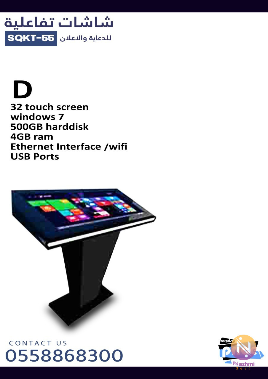 هل تحتاج شاشات اعلانية متعددة الاستخدام الآن ولفترة محدودة عرض خاص على جميع شاشات الإعلانية التفاعلية بانواعها تعمل بلمس او بدون وبجميع المقاسات INTRACTIVE SCREENتعمل بنظام اندرويد او ويندوز او تعمل بدون نظام مع جهاز تشغيل بأمكانيات حديثة تصلح للإغراض التالية : (المؤتمرات - المعارض - الأفتتاحات - عرض الأنشطة داخل مؤسستك للعملاء - المؤساسات التعليمة -الدعاية والأعلان - عرض المواقع الألكترونية علي الزوار- امكانية وضعها داخل منضدة لكي تصبح منضدة تفاعلية داخل المطاعم للقيام بطلب الوجبات الطعام المختلفة او تسلية الزوار علي الأنترنت - امكانية وضع الشاشة في مدخل مدرستك او ناديك وتنفيذ برمجة الخرائط التفاعلية - أمكانية وضعها في محلك او شكرتك لعرض منتجاتك وتصفح موقعك الإلكتروني بسهولة ) والكثير والاكثر من المميزات التي يمكن أن تستفيد منها من خلال هذه الشاشات فروعنا في المملكة العربية السعودية :الرياض/جدة/الخبر/القصيم/خميس مشيط بالإضافة الى فروعنا في البحرين للتواصل جوال او واتساب: 00966558868300