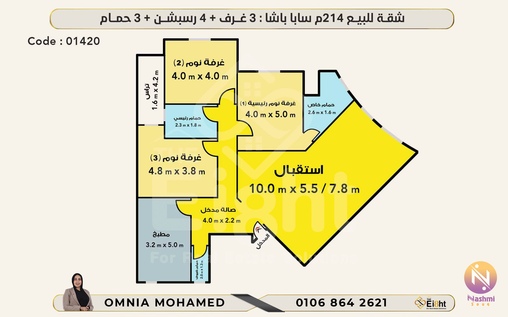 شقة للبيع 214 م سابا باشا ( متفرع من ش أبوقير ) - بسعر : 6,000,000 ج كاش - الوكيل/ أمنية محمد : 01068642621 • عدد الغرف : 3 • عدد قطع الرسيبشن : 4 • عدد الحمامات : 3 • الدور: الأول علوي والعقار 13 دور • شقة مرخصة , بناء التسعينات • العدادات ( كهرباء + مياه + غاز) • فيو : مفتوح • تشطيب كامل • فيديو الوحدة : https://youtu.be/lBwRLr1lJP0 • كود الوحدة : 01420 واتس اب : https://wa.me/201068642621 • لمزيد من الوحدات تقدر تشوف وحداتنا المميزة من خلال : • ويب سايت : https://tinyurl.com/the8web • قناة الواتس اب : https://bit.ly/WA-The8 ================