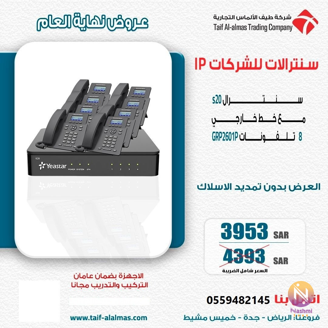 سنترال YEASTAR سنترال IP للشركات ب مميزات سنترال yeastar - إمكانية التحدث من خلال الجوال ( استخدام التحويلة عبر الجوال ) - عمل مكالمات جماعية لأكثر من موظف فى نفس الوقت - تسجيل جميع المكالمات الوارده والصادره والداخلية والرجوع لها في اي وقت ومن اي مكان - ربط الفروع عبر الانترنت - عمل مؤتمرات صوتيه ومرئيه بين الفروع - خاصية البريد الصوتي لجميع موظفي الشركة وايضا عندما تاتي رساله صوتية للموظف وامكانية ارسالها له على البريد الاليكتروني تلقائيا ويسمعها من اي مكان في العالم - اضافة صلاحيات لاستقبال المكالمات - إعطاء صلاحيات لارسال المكالمات بمعني مين يتصل داخلي ومين يتصل على الجوال ومين دولي وهكذا - عمل كلمة سر لكل موظف - ( خاصية الانتظار ) - تحويل المكالمات - معاودة الاتصال عند اتاحة الخط - تحديد ساعات العمل - خاصية عدم الازعاج - نغمات متعددة - عمل اقسام داخلية - الطلب السريع العروض المتوفره العرض الاول: سنترال ياستر S20 سلكى -2 خط خارجى - 8 تحويلات داخلية Grp260 - سويتش 8 بورت برمجة وتركيب بدون تمديدات الاسلاك العرض الثانى : سنترال ياستر S20 لاسلكى -2 خط خارجى - 8 تحويلات داخلية ( وايرلس ) برمجة وتركيب بدون تمديدات الاسلاك فروعنا : الرياض جدة خميس مشيط والتركيب فى جميع انحاء المملكة ضمان عامان التدريب والتركيب مجانا للتواصل جوال و واتس اب ( رقم الجوال يظهر في الخانة المخصصة ) سنترال ip , كول سنتر , سنترال ربط الفروع , جراند ستريم , ياستر حراج سوق الأجهزة حراج سوق لبيع