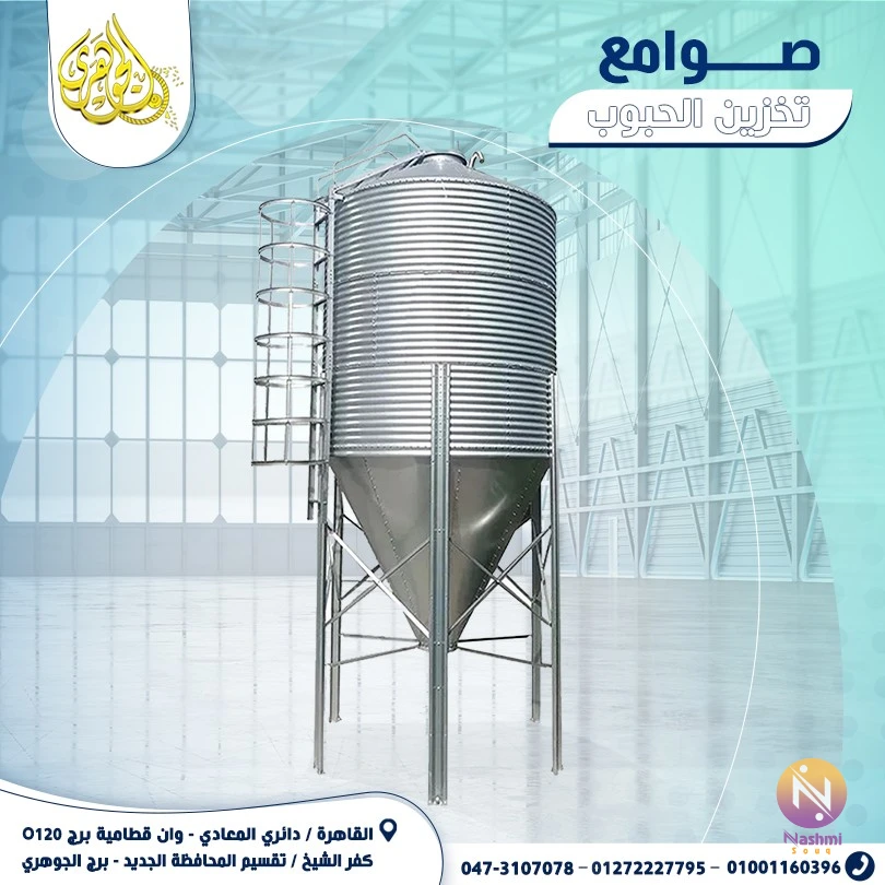 صوامع تخزين الاعلاف والحبوب *عباره عن مبنى محكم الغلق مجهز على اعلى مستوى لتخزين الحبوب وتحميلها وتفريغها قبل بيعها واستعمالها - مزودة ببلور هواء وشفاطات لسحب الرطوبة حتى لاتنمو بها الفطريات التى تودى الى تعفن الخامات -مزودة بحساسات لمراقبة الخامات بها وايضا معرفة القدرة التخزينية - توجد بطاقات انتاجية مختلفة نبدا من 30 طن وهى افضل مخازن الحبوب في العصر الحديث معدات,اعلاف,صوامع,تخزين,حبوب ,الجوهرى, يمكنكم الاتصال بنا على: 002-01001160396 002-01272227795 002-047-3107078 العنوان: جمهورية مصر العربية - القاهرة – دائرى المعادى وان قطامية 65 (برج O120 ) – الدور السادس - كفرالشيخ - تقسيم المحافظة الجديد ( خلف سيراميكا رويال ) برج الجوهري