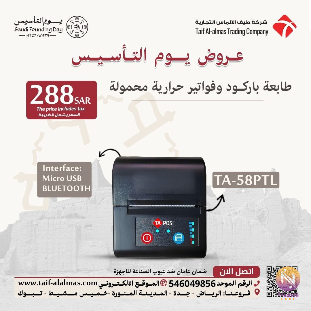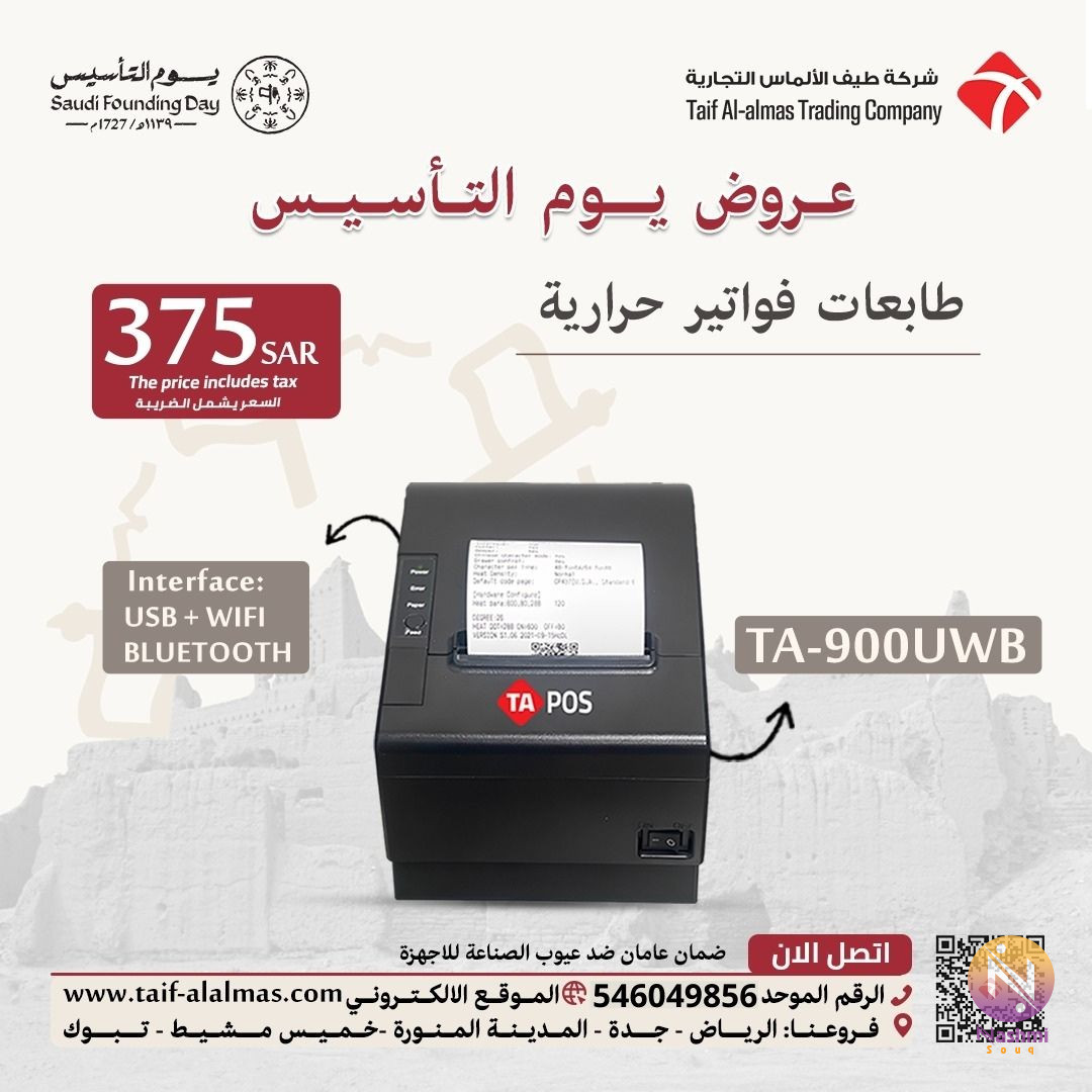 (شركة طيف الالماس التجاريه تقدم لك عروض الجمعه البيضاء طابعات فواتير وطابعات باركود) *افضل انواع طابعات الفواتير الحرارية -طابعات فواتير حرارية تدعم الاتصال عن طريق USB -طابعات فواتير حرارية تدعم الاتصال عن طريق الشبكة -طابعات فواتير حرارية تدعم الاتصال عن طريق WIFI -طابعات فواتير حرارية تدعم الاتصال عن طريق بلوتوث -طابعات فواتير حرارية محموله تدعم الاتصال عن طريق USB-بلوتوث *مميزات طابعة الفواتير الحرارية : -دقة طباعة عالية الجوده -سهولة الاستخدام والصيانة -سرعة طباعة عالية تصل الى 152mm/s -طباعة حرارية للفواتير (دون الحاجة لتوفير حبر) -تدعم التوصيل الشبكي,USB,بلوتوث,wi fi -إصدار رنين في حال إنتهاء الورق -طباعة أكثر من فاتورة في نفس الوقت -خدمة الفصل الالى للفواتير -الطباعة عن بعد من خلال الأجهزة اللوحية -متوافقة مع نظام الأندرويد والويندوز -مودلات واشكال عصرية تناسب جميع الاذواق (طابعات باركود حرارية تعمل بمنفذ usb مع خاصية فصل الملصق الآلى) *مميزات طابعة الباركود الحرارية -هذه الطابعة قادرة على إنتاج مطبوعات عالية الدقة بسرعة وسهولة. -تتميز برأس طباعة حراري طويل الأمد يضمن طباعة دقيقة للرموز الشريطية لأي . -كما أنها مصممة بهيكل مضغوط وخفيف الوزن ، مما يسهل نقلها وتخزينها. -بفضل تقنية الفصل الالي المتقدمة ، تعد طابعة الباركود الحرارية مثالية للشركات التي تحتاج إلى طباعة سريعة وموثوقة . -احصل على طابعة الباركود الحرارية اليوم وابدأ عملك في العمل في لمح البصر -تمنحك افضل طباعة بحيث تكون دقيقة و واضحة و فى وقت ممتاز. -تمت صناعتها باحترافية حتى تمنحك استخدام مثالى. -طباعة عالية السرعة حيث انها تعمل بـ 6 بوصات. -طابعة باركود وفواتير جاءت بتصميم عالي الجودة جدار مزدوج. ● فروعنا: -الرياض-جده-خميس مشيط-المدينة المنورة-تبوك -ضمان عامان على جميع المنتجات -فريق محترف للتركيب والبرمجة -خدمة دعم فنى بعد البيع ● الجوال :(0546049856) ● واتساب :wa.me//966546049856# #سعر_مخفض_طابعة_باركود_و_فواتير #طابعة_الباركود_و_الفواتير #طابعة_باركود_و_فواتير_حرارية #طابعات_باركود #أفضل_طابعة_باركود_في_الرياض #أفضل_طابعة_فواتير_في_الرياض #سعر_طابعة_باركود #سعر_طابعة_باركود #طابعة_فواتير #طابعات_باركود_إحترافية #طابعات_فواتير_إحترافية #أسعار_طابعة_باركود_في_السعودية #جميع_موديلات_طابعات_الفواتير_و_الباركود #أنواع_طابعات_الباركود_و_الفواتير #طابعة_باركود_للبيع_في_الرياض #طابعة_فواتير_للبيع_في_جده #سعر_مميز_لطابعة_الفواتير_و_الباركود #أفضل_جودة_لطابعة_الباركود_و_طابعة_الفواتير #طابعة_فواتير_حديثة_في_السعودية #طابعة_باركود_حديثة_في_الرياض #أحدث_طابعة_باركود #أحدث_طابعة_فواتير_فورية #أفضل_سعر_طابعة_باركود_في_السعودية #أفضل_سعر_طابعة_فواتير_في_الرياض #أنواع_طابعات_الباركود #أنواع_طابعات_الفواتير