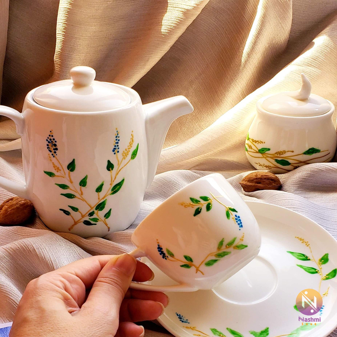 طقم شاي مميز رسم يدوي
