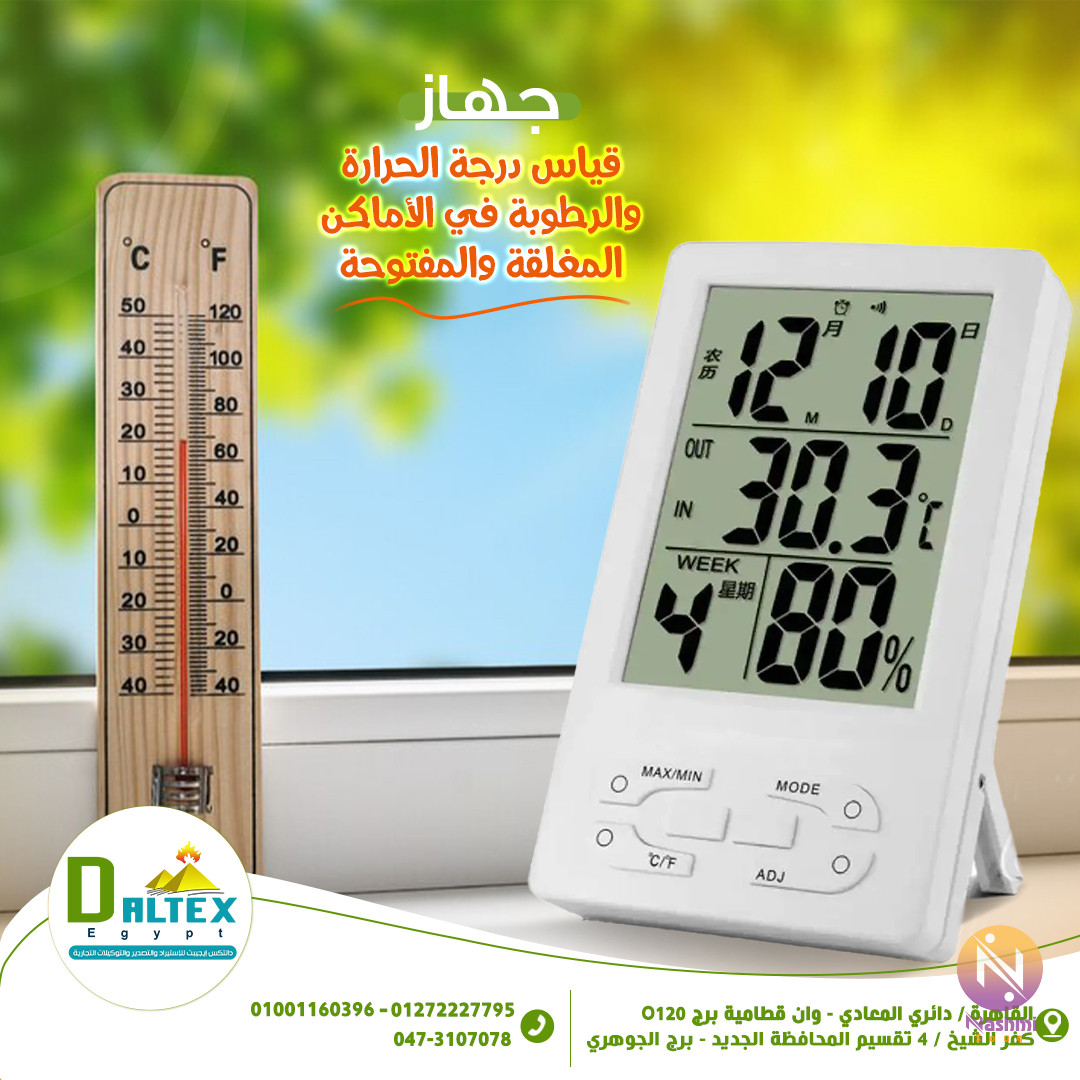 ترمومتر قياس درجة الحرارة والرطوبة فى الاماكن المفتوحه والمغلقه المزود بساعة • الجهاز مزود بجهاز استشعار لدرجة الحرارة الخارجية فى الاماكن المغلقه والمفتوحه •يمكن تعليق الجهاز على الحائط او وضعه على سطح المكتب 📞 يمكنكم الاتصال بنا على: 002-01001160396 002-01272227795 002-047-3107078 🌐 او زيارة موقعنا : https://daltexeg.com/ أو زيارة صفحتنا علي الفيس بوك: https://www.facebook.com/elgoharyDevices/ 🏢 العنوان: جمهورية مصر العربية - القاهرة – دائرى المعادى وان قطامية - كفرالشيخ - تقسيم المحافظة الجديد ( خلف سيراميكا رويال ) برج الجوهري - #دالتكس_ايجيبت - #رطوبه_حراره - #رطوبة_اماكن - #اجهزة_قياس